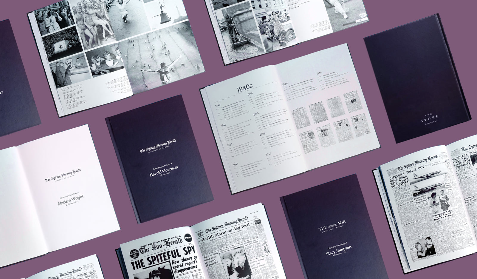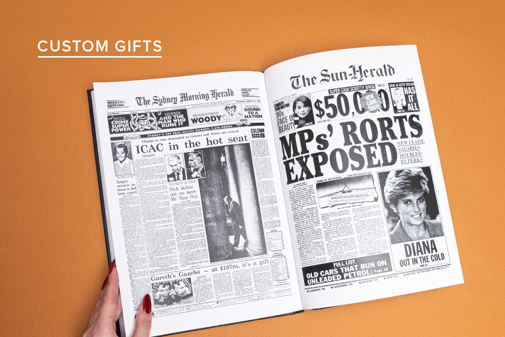 Give the gift of history with a collation of front pages from every year of their life, satin-bound in a custom Birthday Book